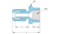 NO. | Tube O.D. | NPT Size | Orifice | A | B | C | HEX | ||